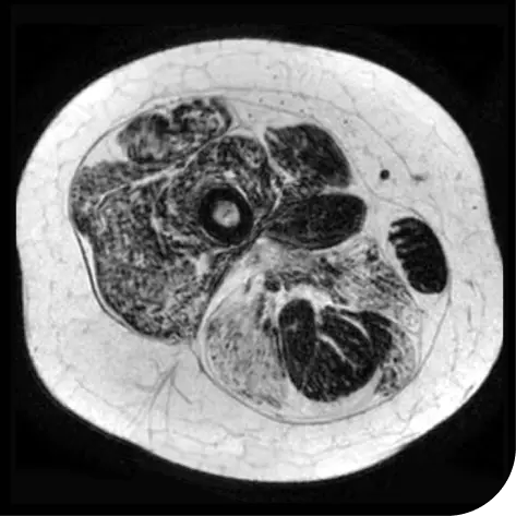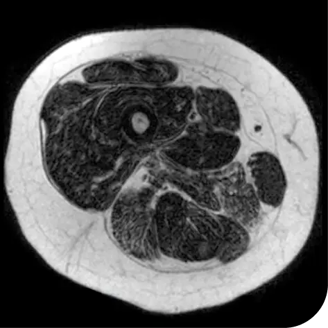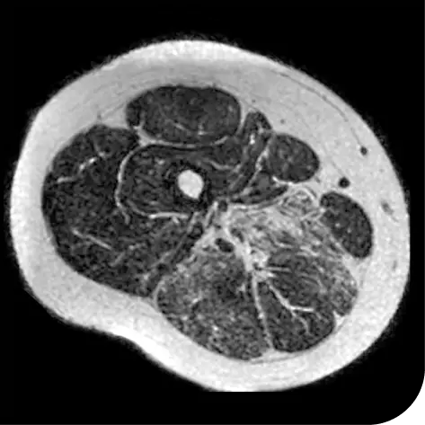 Measurement of how much fat was in the muscle of the upper leg to understand muscle loss. This was assessed by MRS, an imaging test